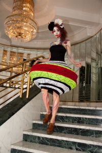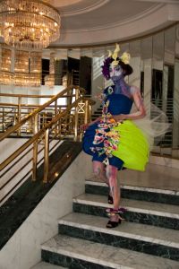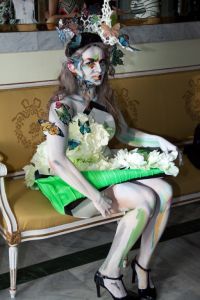 "Sztuka Dominika Jasińskiego nigdy nie była dla mnie tożsama z unieruchomionym płótnem. Myśląc o Jego dziełach widzę ruch, energię, niesamowity teatr kolorów porywający do działania i marzenia. Ten świat wydał mi się tak inspirujący, że musiałam go urzeczywistnić. Postanowiłam sprowadzić na ziemię pięć postaci z obrazów Dominika. Przy współpracy ze szkołą MAKE UP STAR oraz przy użyciu środków takich jak body painting, peruka artystyczna, kostium i choreografia, udało nam się stworzyć performance, podczas którego każda z pięciu postaci przemówiła własnym głosem.
